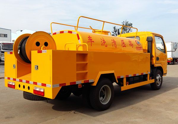 高壓清洗車也稱之為管道疏通車,通過高壓水流產生的強大壓力沖開被堵塞的管道。主要組成部分為罐體、高壓泵、液壓系統等。高壓清洗車主要用于清洗城市下水道、管道的沉積物、死角泥溝的疏通,也可用于清洗工業排液管道、壁面等,清洗公路、廣場地面。