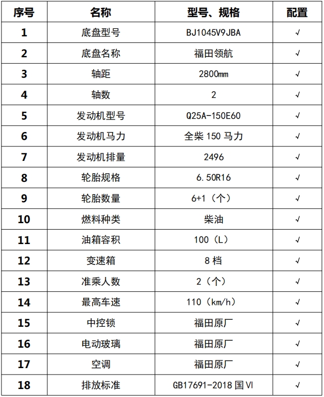 1、僅采用軸距(mm):2800;該車主要用于路面水泥凈漿灑布;主要裝置為罐體、灑布裝置; 2、側防護采用鋁合金材質,側防護與副車架螺栓連接,后防護為專用裝置代替,下邊緣離地高300mm;3、ABS系統控制器型號為CM4XL-4S/4M,ABS系統控制器生產企業為廣州瑞立科密汽車電子股份有限公司。后部照明燈僅在駐車狀態下使用,起夜間照明作用,行駛過程中不可點亮.選裝前圍風格,選裝鋁合金輪轂。