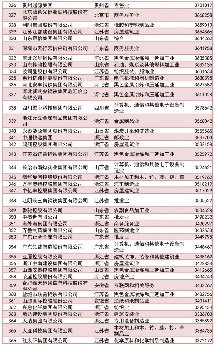 2023中國民企500強榜單,程力集團排名第378位: