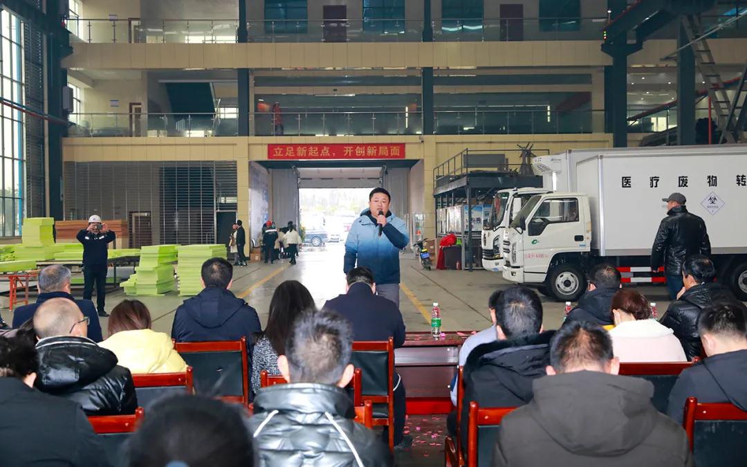 3月2日,程力特種冷鏈車專業廠花費數百萬元引進的自動化廂式車板材切割復合生產線正式剪彩投入使用,集團公司總經理程阿羅出席剪彩儀式,并發表講話。