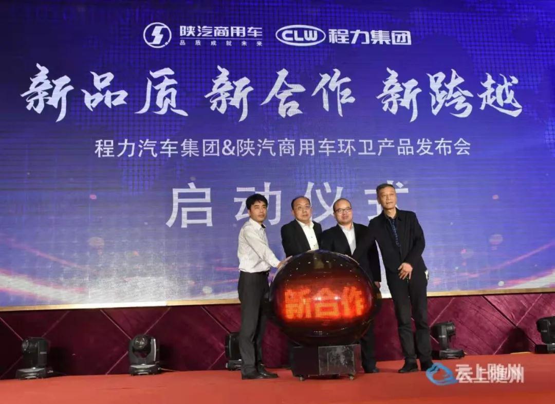 程力汽車集團(tuán)黨委副書記、集團(tuán)公司常務(wù)副總經(jīng)經(jīng)理、程力(湖北)底盤供銷公司董事長(zhǎng)程國(guó)強(qiáng),陜汽商用車銷售公司副總經(jīng)理魏宇龍,程力集團(tuán)副總經(jīng)理、底盤供銷公司總經(jīng)理劉峰,陜汽商用車銷售公司專用車部部長(zhǎng)穆瑋周共同啟動(dòng)水晶球,宣布程力集團(tuán)陜汽商用車環(huán)衛(wèi)系列產(chǎn)品正式發(fā)布。