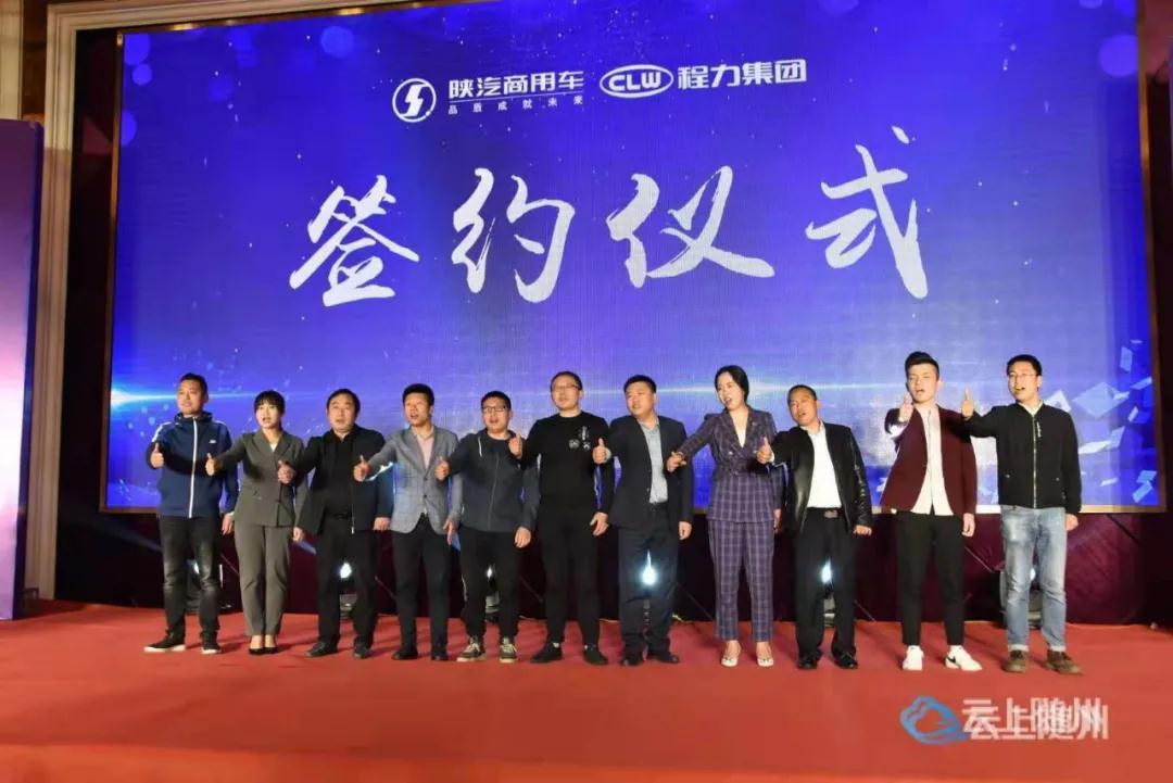 程力陜汽商用車底盤事業(yè)部負(fù)責(zé)人高波宣布了新產(chǎn)品價(jià)格和團(tuán)購(gòu)政策,與合作代表進(jìn)行了簽約儀式,并合影紀(jì)念。