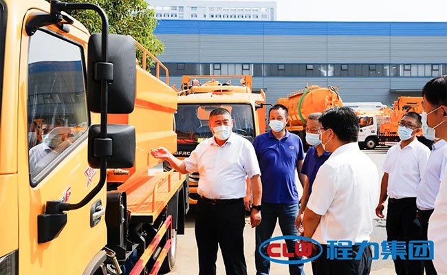 庚即,代表團一行饒有興趣的參觀了程力高端抑塵車專業(yè)廠的疫情消毒霧炮車,程國強書記與執(zhí)行總經理朱武分別向代表團介紹了程力自己研發(fā)的無副發(fā)動機的智能化多功能消毒防疫車產品性能和市場銷售情況。