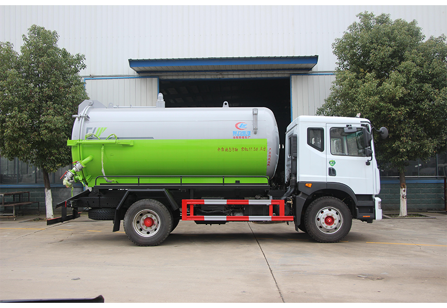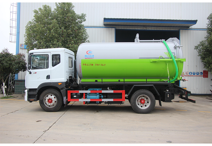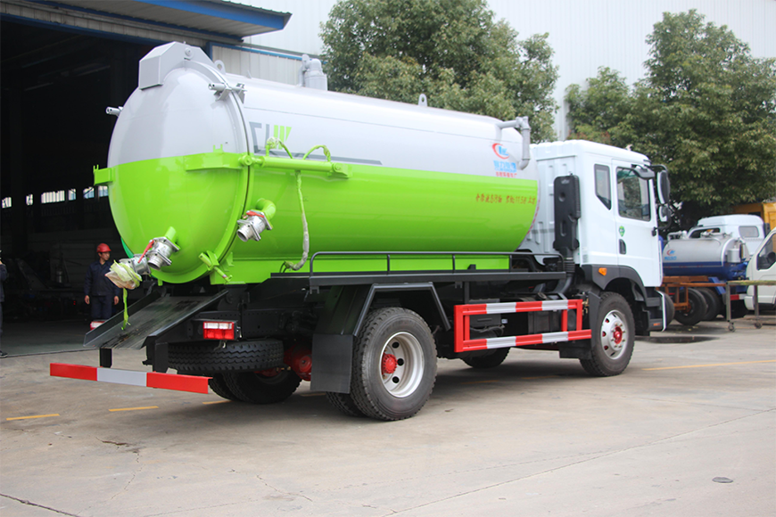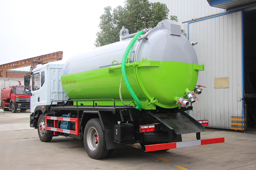 上裝配置 污罐:Q235武鋼6MM厚碳鋼板,標配采用億豐SK-12水循環泵。防溢閥,視糞管,配一根8米吸污管,罐體封頭一次壓鑄成型、罐體帶舉升,后蓋為液壓開啟。罐內污物可通過后蓋直接傾倒,具有真空度高、噸位大、效率高、用途更廣泛的特點。