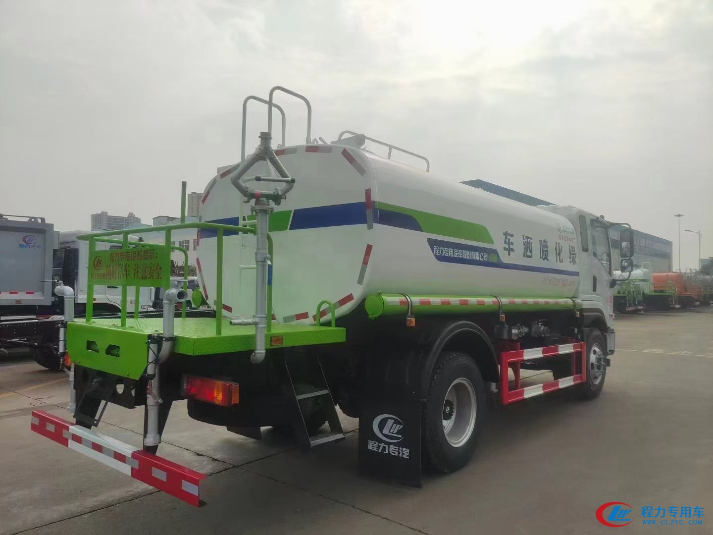 | 上裝配置 | 上裝武鋼優(yōu)質碳鋼板,容積12立方,厚度4mm,封頭5mm,前后封頭機器人自動焊,內設隔浪板,帶液位計, 配程力原廠大功率灑水泵,帶駕駛室電控操作,前沖后灑4個新式不銹鋼切斷閥,前沖 后灑 側噴 后高炮,后高炮可調節(jié)柱狀 雨狀和霧狀,新式沖孔工作平臺,主管道加粗,副管道全采用優(yōu)質鍍鋅管道,帶自吸自排,自流閥,消防接頭,過濾裝置,邊燈帶電,其他標配… | ||