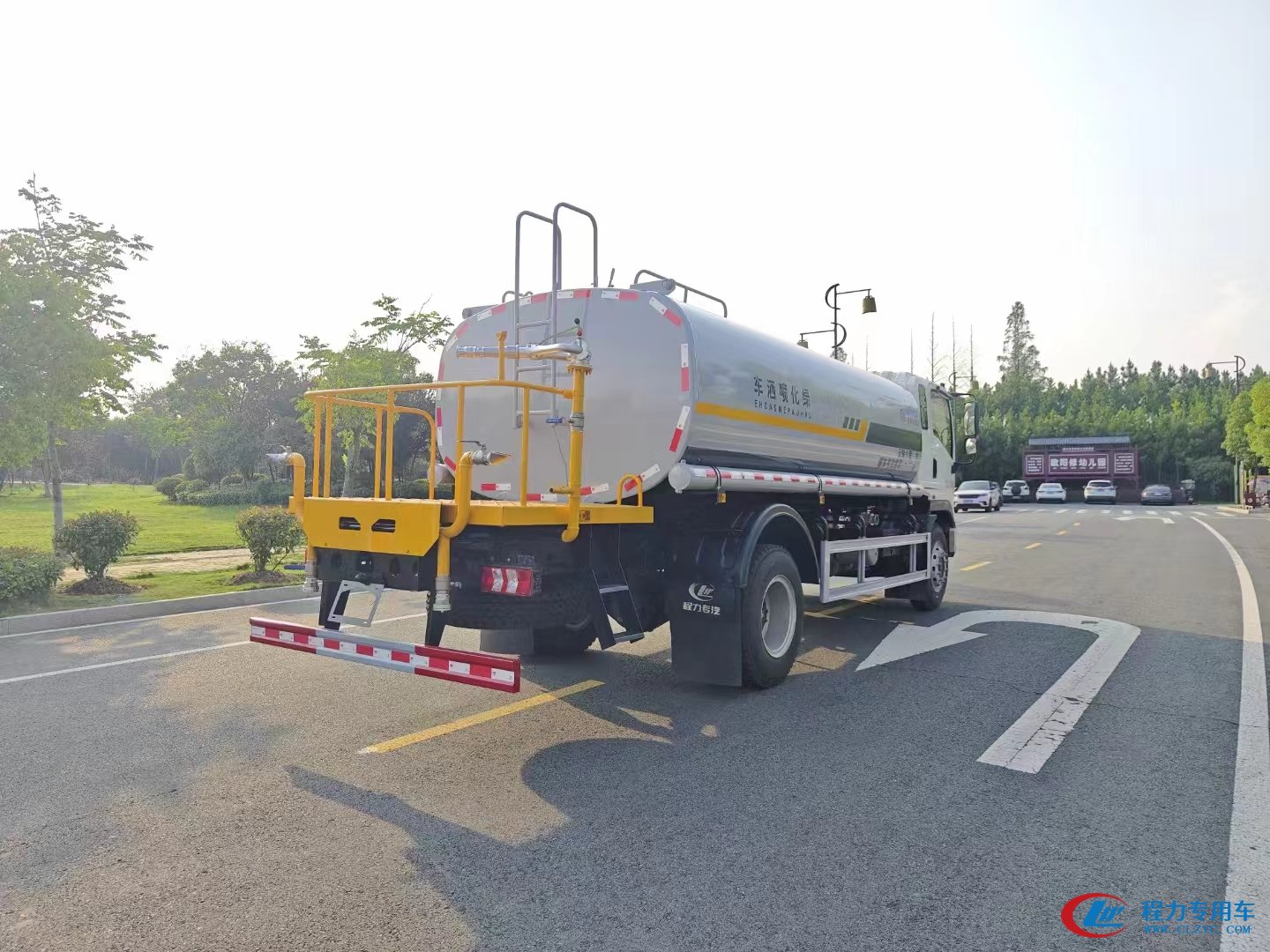 上裝配置 材質:罐體采用Q235,隔板厚度3mm,罐體碳鋼厚度4mm,封頭厚度5mm.大口徑直通球閥,鋁合金三通,加粗主管道(76),鑄鋁管接件:鋁合金彎頭三通、鋁合金法蘭三通、鋁合金泵出口四通、鋁合金泵進口直通,模具一次性壓鑄成型,無焊縫,避免漏水,標準化設計,互換性好,方便維修換件,鋁合金材質更輕量化,美觀實用,提升產品檔次。 其他配件:鋁合金后灑、不銹鋼球閥、高壓水炮,沖孔板平臺:2mm沖孔板,防滑性更好,平臺上不積水,結構優化,沖壓成型,強度更好,輕量化設計,美觀實用,提升產品檔次 灑水車專用性能灑水車專用性能 前沖(噴)后灑、帶側噴、帶后工作平臺、平臺上安裝綠化灑水高壓炮(炮噴射形狀可調:直沖狀、大雨、中雨、毛毛雨,可連續調節,最大射程可達30米),配備大功率專用灑水泵,帶消防接頭,帶自流閥,帶自吸功能,帶濾網。吸程≥6米 灑水寬度≥16米 射程≥30米 霧狀≥15m 。